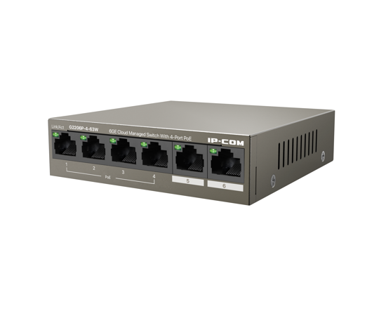 Коммутатор IP-COM G2206P-4-63W Web smart PoE от IP-COM с 4 гигабитными портами PoE (максимальная мощность PoE 5Вт)