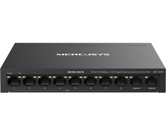 Коммутатор Mercusys MS110CMP Настольный с 8 портами PoE+ 10/100Мбит/c и 2 гигабитными портами