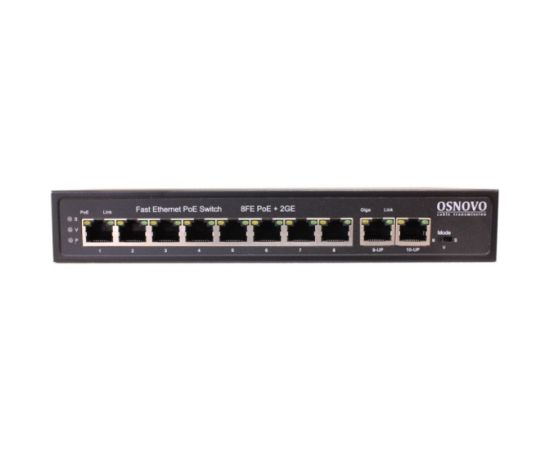 Коммутатор OSNOVO SW-20820(120W) PoE 8 x FE с поддержкой (IEEE 802.3af/at), 2 GE