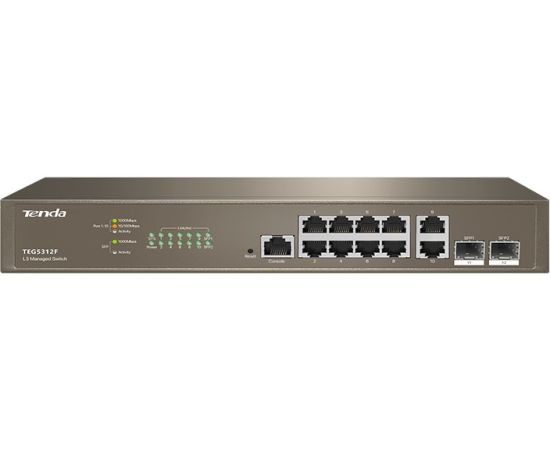 Коммутатор управляемый L3 Tenda TEG5312F 12 портов, 10х1Гбит/с, Base-X SFP 2х1Гбит/с, настольный