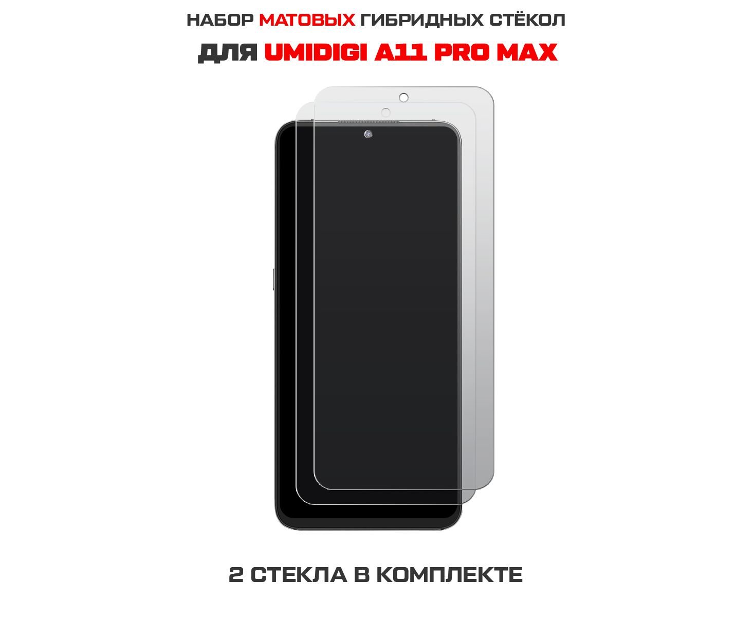 Комплект из 2-х защитных гибридных стекол МАТОВЫХ Krutoff для UMIDIGI A11 Pro Max