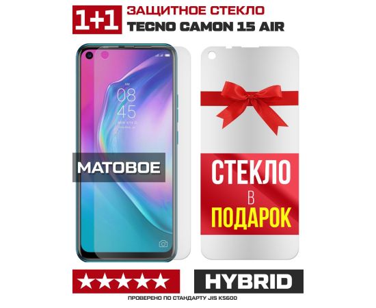 Комплект из 2-x защитных гибридных стекол МАТОВЫХ Krutoff для Tecno Camon 15 Air