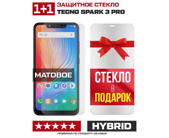 Комплект из 2-x защитных гибридных стекол МАТОВЫХ Krutoff для Tecno Spark 3 Pro