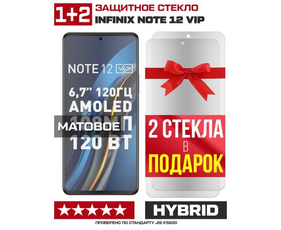 Комплект из 3-x защитных гибридных стекол МАТОВЫХ Krutoff для INFINIX Note 12 VIP