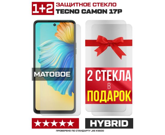 Комплект из 3-x защитных гибридных стекол МАТОВЫХ Krutoff для Tecno Camon 17P