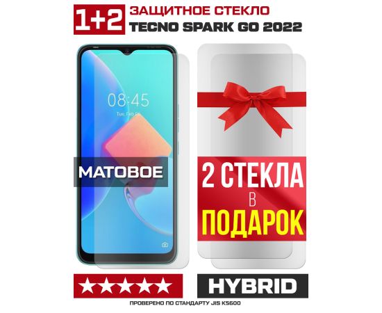 Комплект из 3-x защитных гибридных стекол МАТОВЫХ Krutoff для Tecno Spark Go 2022