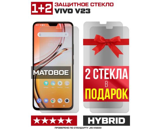 Комплект из 3-x защитных гибридных стекол МАТОВЫХ Krutoff для Vivo V23