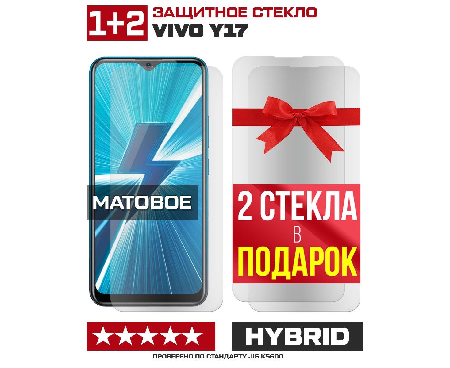 Комплект из 3-x защитных гибридных стекол МАТОВЫХ Krutoff для Vivo Y17