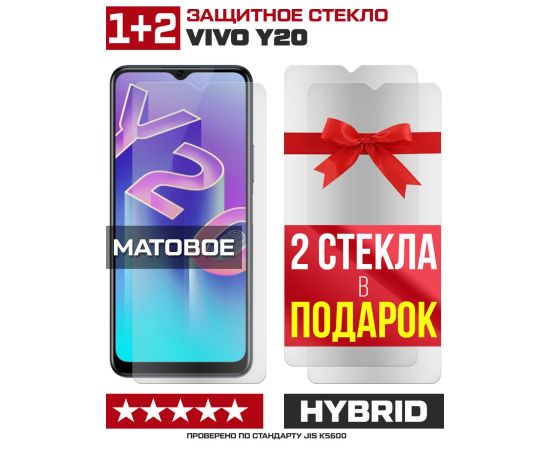 Комплект из 3-x защитных гибридных стекол МАТОВЫХ Krutoff для Vivo Y20