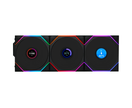 Комплект вентиляторов (3шт.) Li Uni Fan TL Wireless LCD 120 Reverse Blade (G99.12RTLLCD1W3B.R0)/12RTLLCD1W3B Black/120x124x28мм(PWM, ARGB,1900 об/мин)
