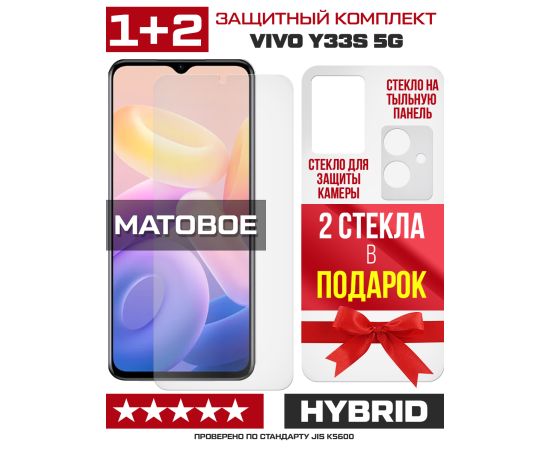 Комплект защитных гибридных стекол МАТОВЫХ Krutoff для Vivo Y33s 5G перед / зад / камера (2 шт.)