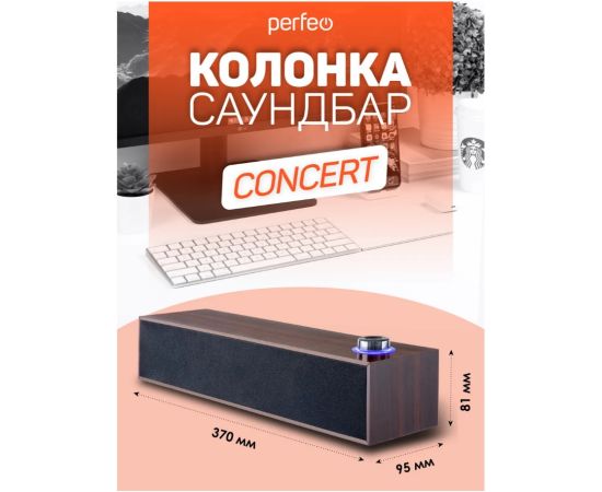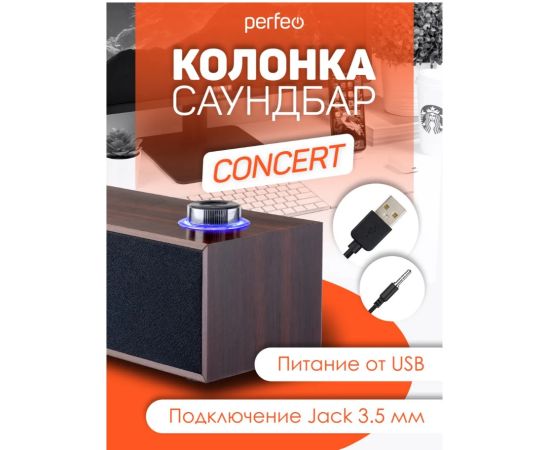 Компьютерная колонка-саундбар Perfeo "CONCERT", мощность 6 Вт, USB, "дерево", коричневый