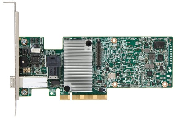 низкопрофильный RAID-контроллер, интерфейс подключения: SAS 12, тип разъема PCI: PCI Express 3.0 x8, 1 Гб кэш-памяти, разъёмы: внутренний SFF8643, внешний SFF8644, RAID 0/1/5/10/50/6/60, 4 внешних и 4 внутренних канала, модель: MegaRAID SAS 9380-4i4e