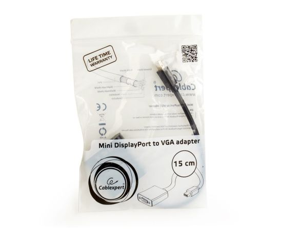 Конвертер Mini DP-1.1a (папа) - D-SUB/VGA (мама), кабель 15 см, черный, 1920x1200(1080)@60Hz, поддерживает Apple, Oem, Cablexpert A-mDPM-VGAF-02