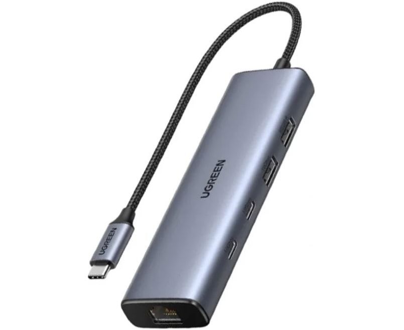 Конвертер UGREEN CM512 (45320) USB 3.2 C to USB-A 3.2+USB-A 2.0+2* USB-C 3.2 Converter + Gigabit with USB-C Power Port серый