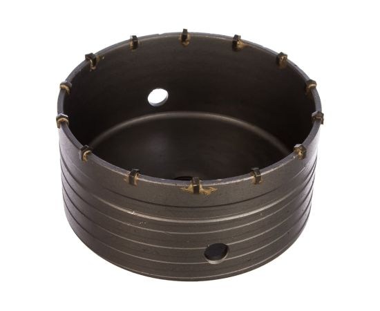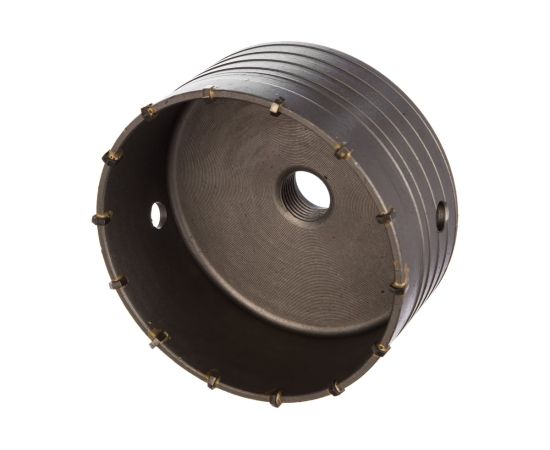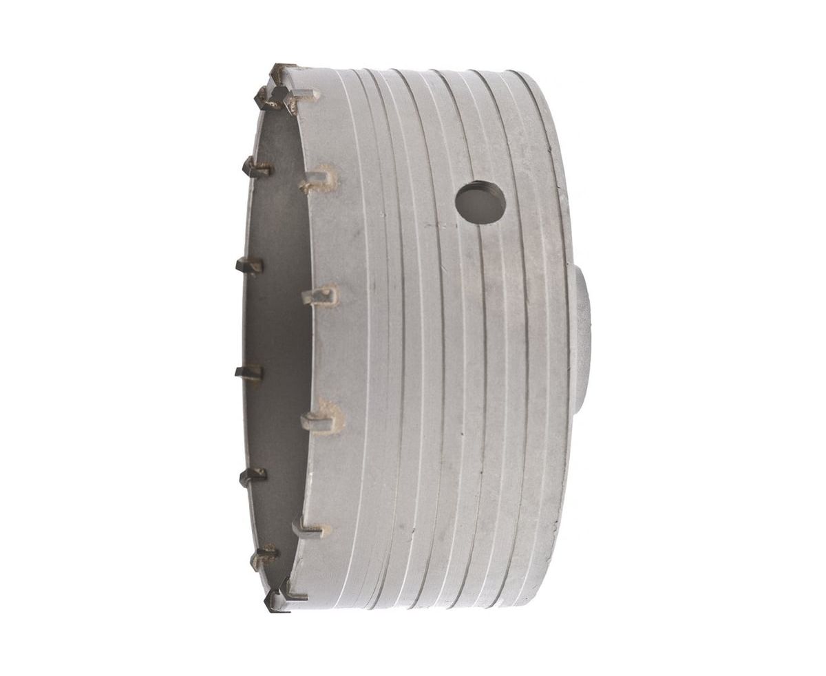 Буровая коронка M22 х 125 мм Matrix 70394 рассчитана на сверление отверстий в бетоне, кирпиче, граните, природном и искусственном камне. Устанавливается на ударные дрели или перфораторы с патронами под хвостовик SDS-Plus или SDS-Max. Коронка позволяет получить большие отверстия, поэтому пригодится для монтажа розеток, выключателей и прокладки труб.