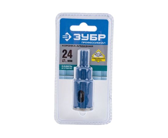 Коронка Зубр 29850-24 по каф/стекл Д-24мм (1пред.) для шуруповертов/дрелей