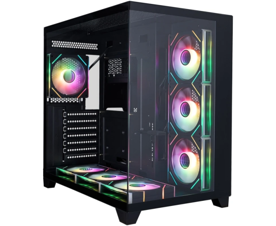 Корпус 1STPLAYER Megaview MV8-TP ARGB Black (MV8-TP-BK-6FC7R-1FC7-HUB2) / ATX / 7x120mm ARGB fans hub