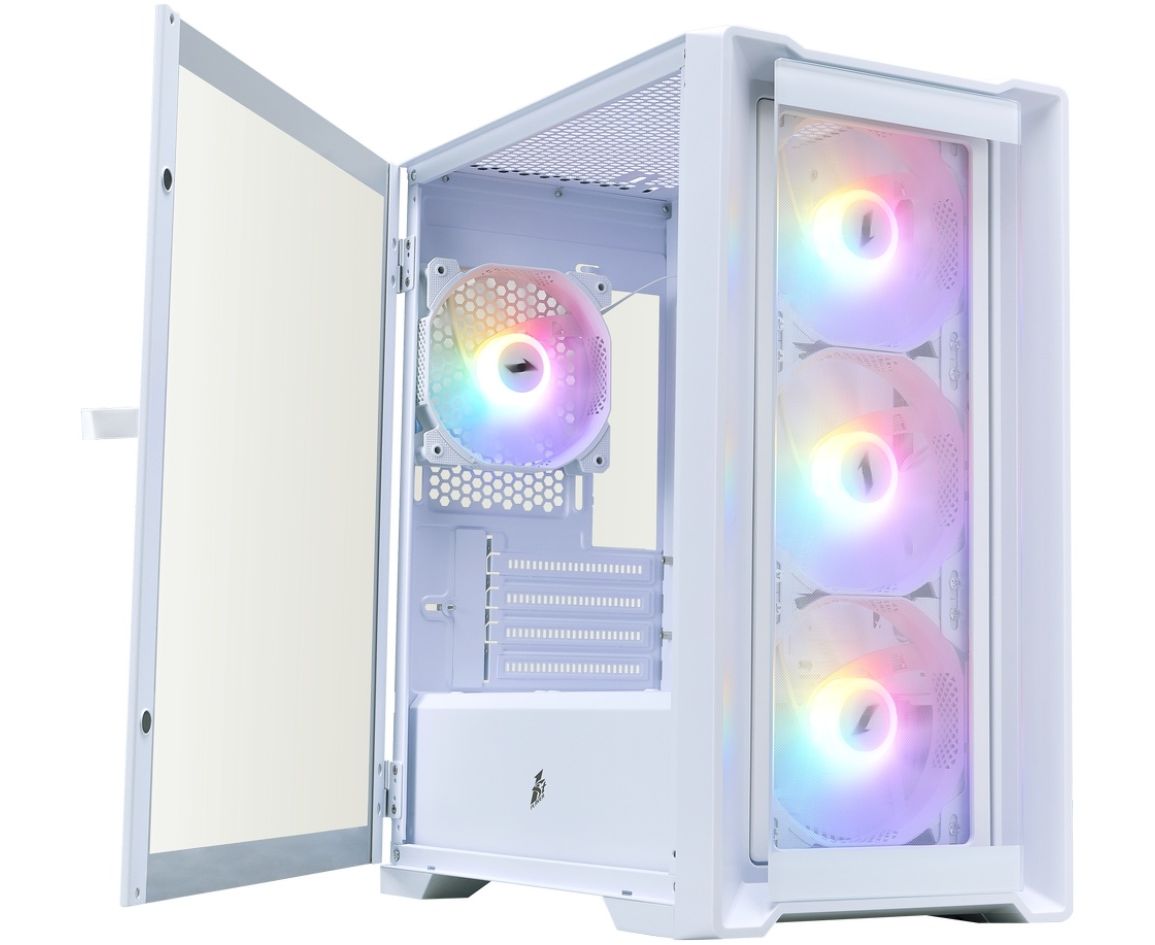Корпус 1STPLAYER TRILOBITE T4-G GLASS FRGB, белый (T4-G-WH-4F1-W)