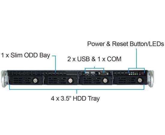 Корпус Ablecom CS-R11-55P 1U chassis, Mini-ITX, Micro-ATX, ATX MBs, 4 x 3.5'' hsb, 2 USB, 1 COM port (Front), FH expantion slot, 600W (1+1)