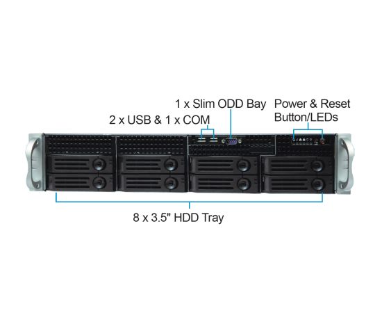 Корпус Ablecom CS-R25-42P 2U chassis, ATX, Micro-ATX, Mini-ITX MBs, 8-port 12 Gbps SAS/ SATA to BP, 8 x 3.5'' hsb + 2 3.5" internal, 7 LP/ H
