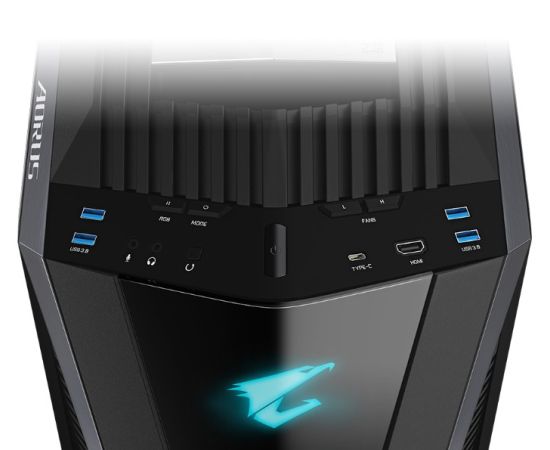 Разъемы на лицевой панели:4x USB 3.0, 1х USB Type-C, Разъем для наушников, Разъем для микрофона, Контроллер вентиляторов, Кнопка Reset, Кнопка Power (вкл/выкл), Управление подсветкой, 1x HDMI