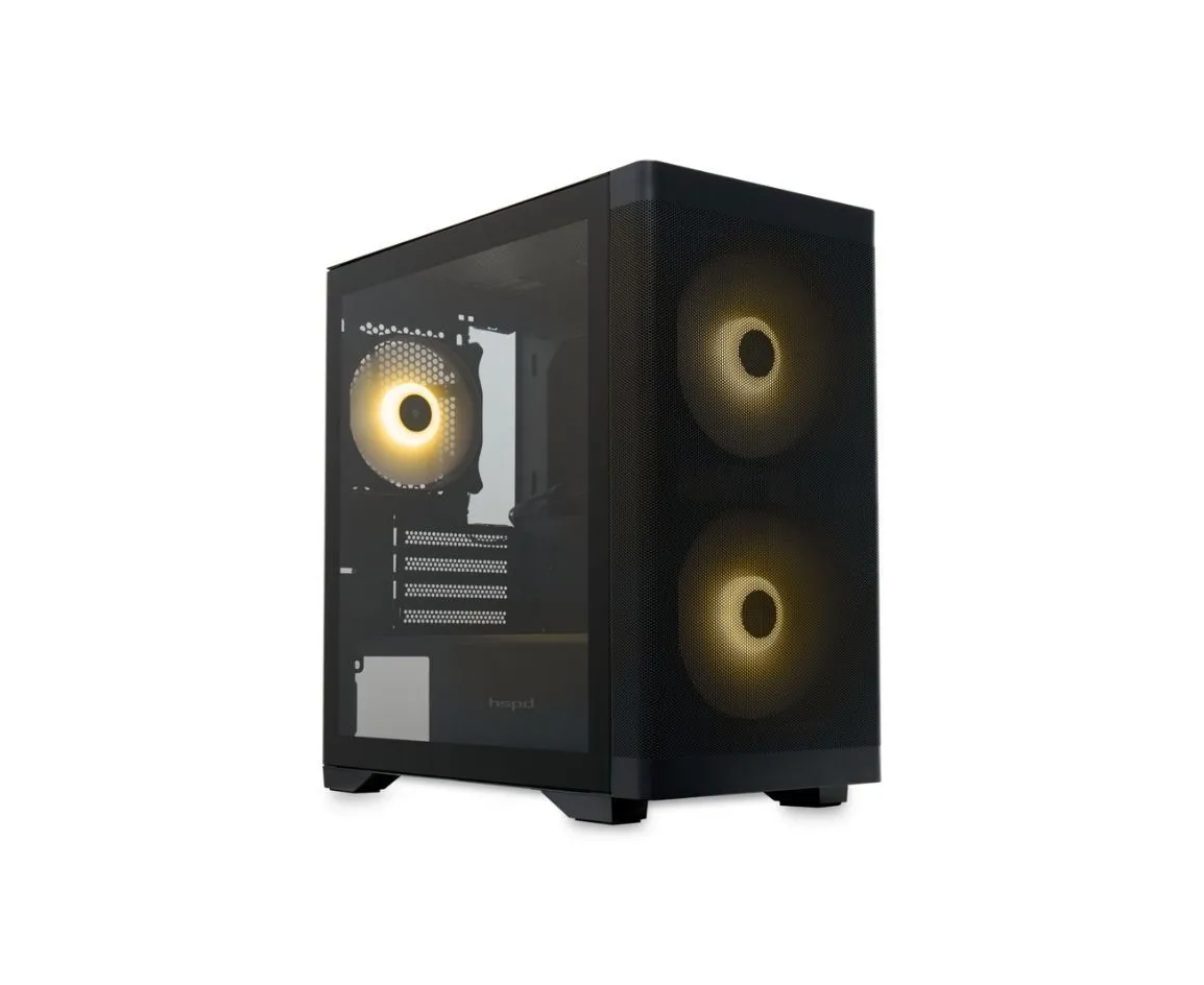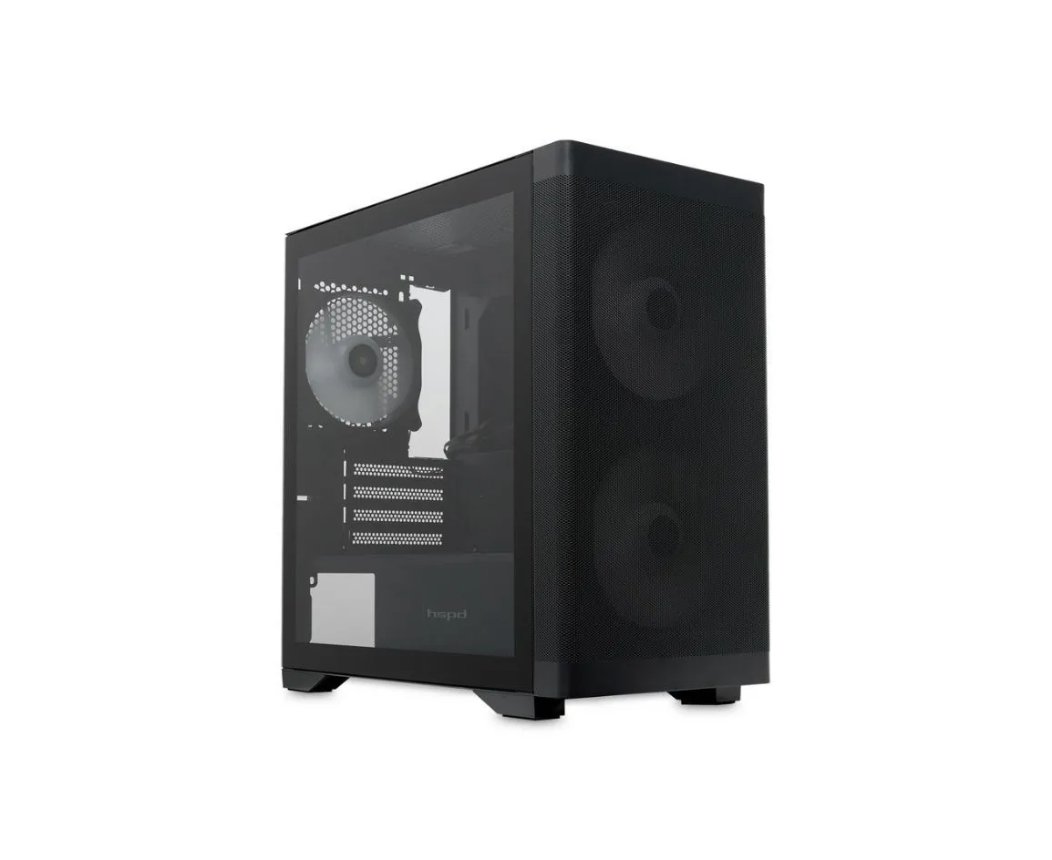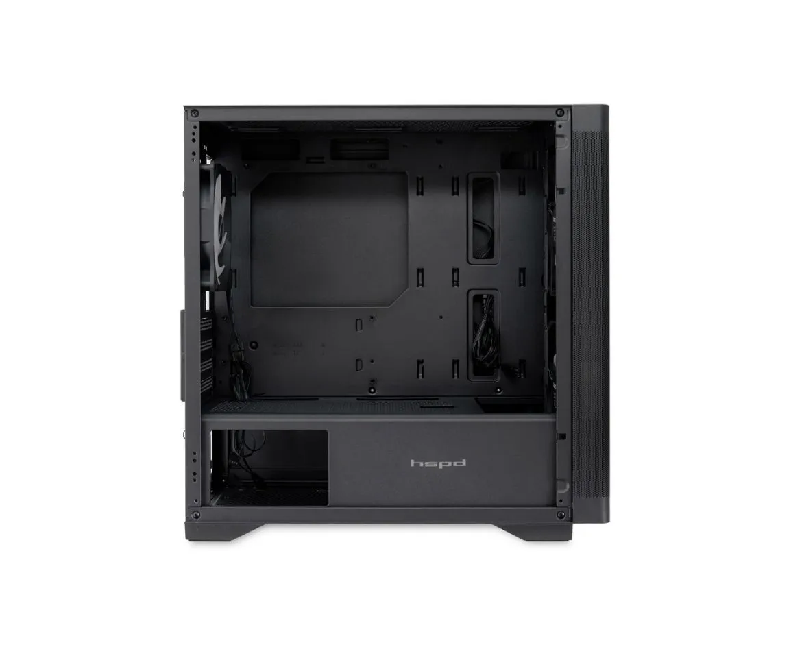 Корпус HSPD M320 (M320-TGBK-ARGB), Mesh Mini-tower, Black, slide TG, 0.45 SPCC, 2x140mm ARGB+1x120mm ARGB mATX