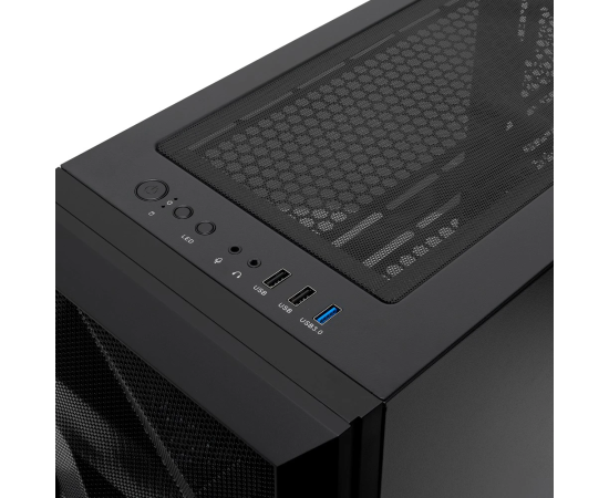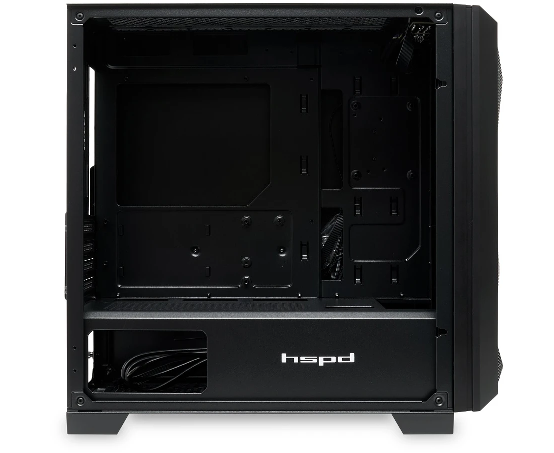 Корпус HSPD M340 (M340-TGBK), без БП, Mesh Mid Tower, Black, TG, 0.5 SPCC, no fans, mATX, mITX, 165/350/200mm, 2x2.5", 4xPCI, 1xUSB-A 3.0