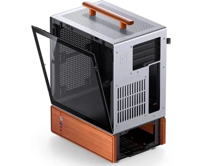 Корпус JONSBO T7 Silver без БП, боковая панель из закаленного стекла, mini-ITX, micro-ATX, серебристый