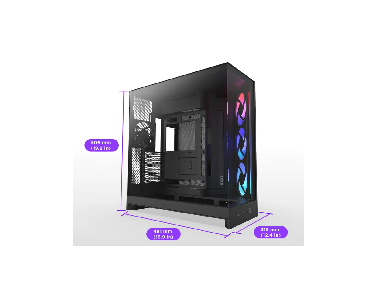 Корпус NZXT H9 Flow RGB (CM-H92FB-R1) без БП (2025), Midi-Tower, TG, 3x140mm + 1x120mm, 2xUSB-A 3.2 1xUSB-C E-ATX, ATX, mITX Black