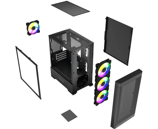 Корпус Powercase Mistral Micro A13B (CMMA13B-L4), Tempered Glass, 4x120mm FRGB fan, чёрный, mATX