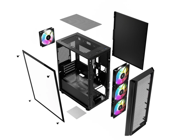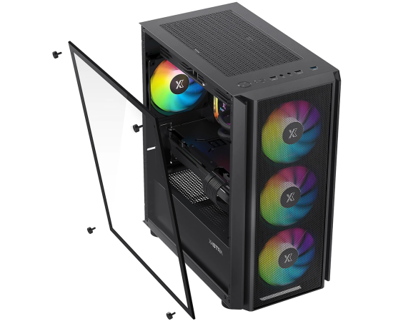 Корпус XASTRA A402M 4ARGB-C6 Black (A402M-4FC12A-BK-C6) mATX/Mesh/full-size TG/ 4x120mm ARGB PWM fans/Argb+PWM HUB 6port