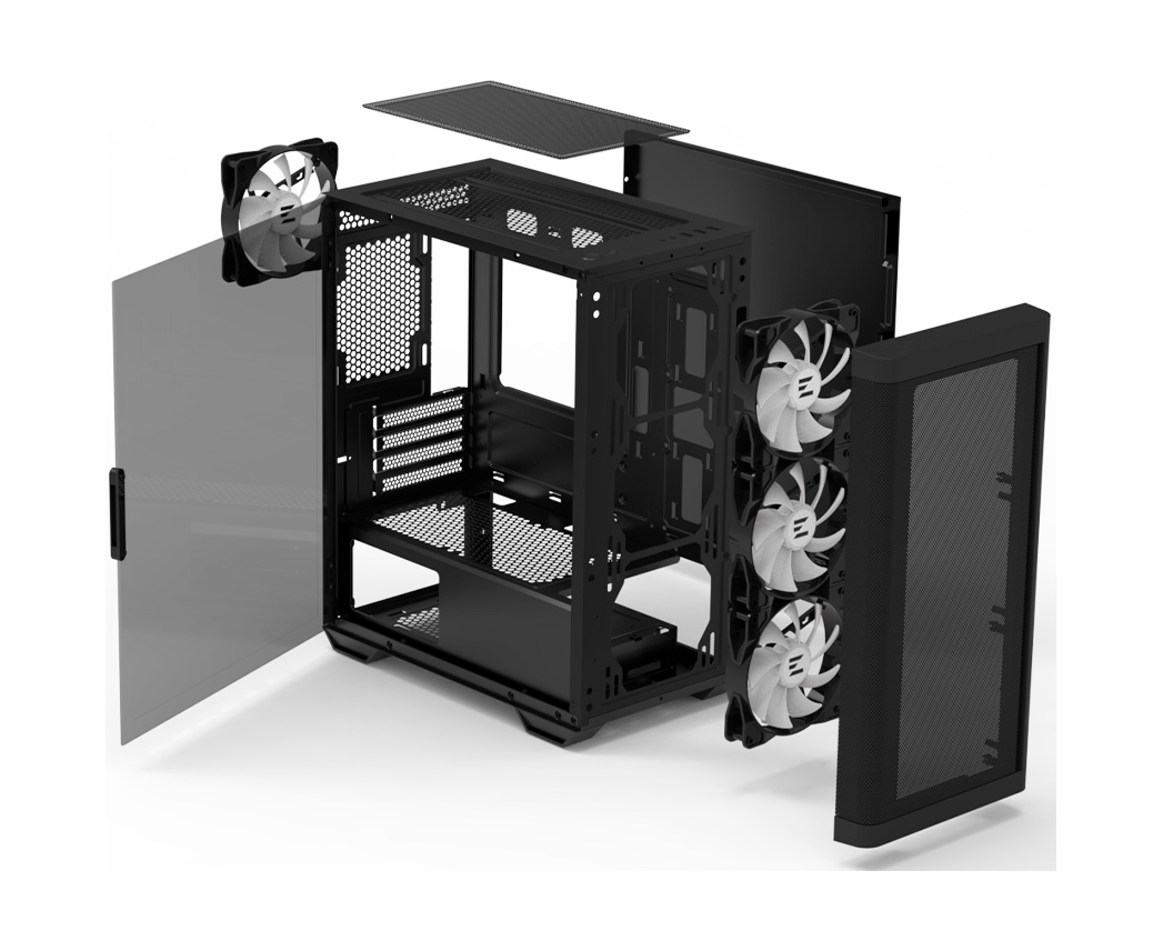 2 x 120 мм на верхней панели, 2 x 140 мм на передней панели, 2 x 120 мм на нижней панели