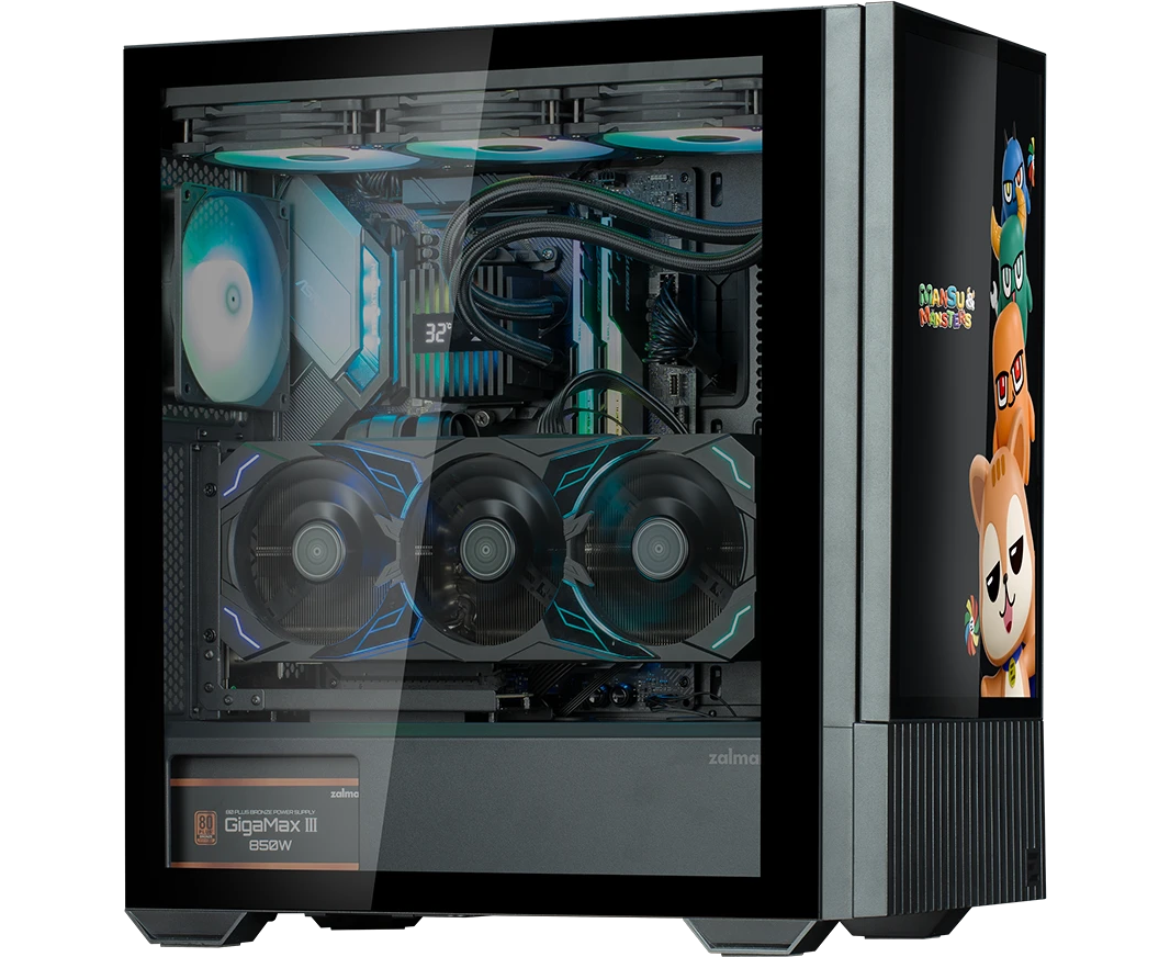 Корпус ZALMAN Z10 DS, ATX, Black, Window, built-in 15.6-inch FHD display, 2x3.5", 2x2.5", 2xUSB3.0, 1xUSB 3.1 Type-C, Front 2x120mm, Rear 1x120mm ARGB