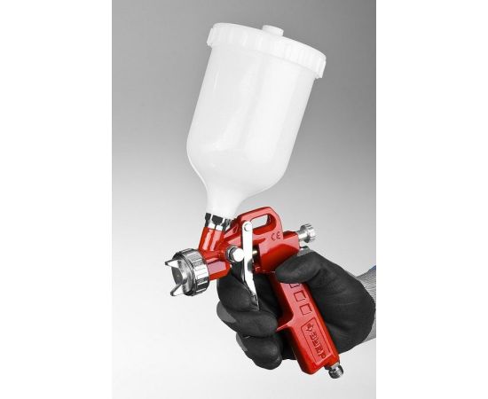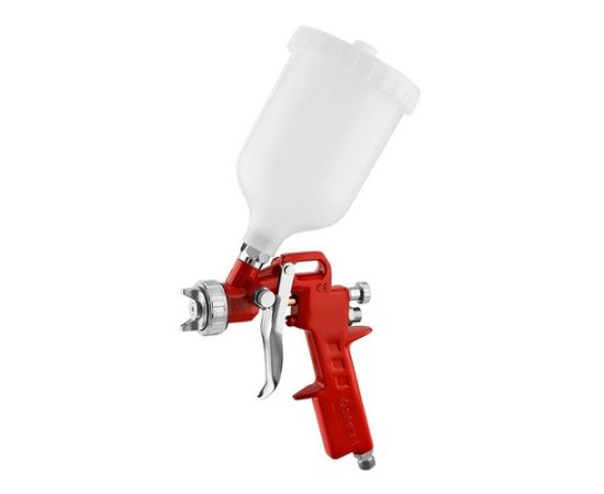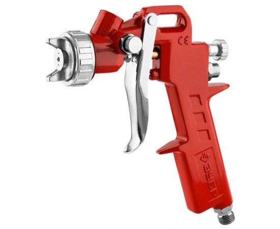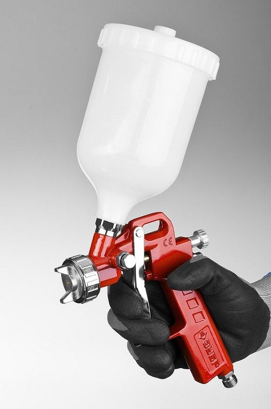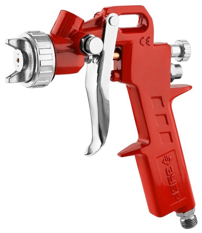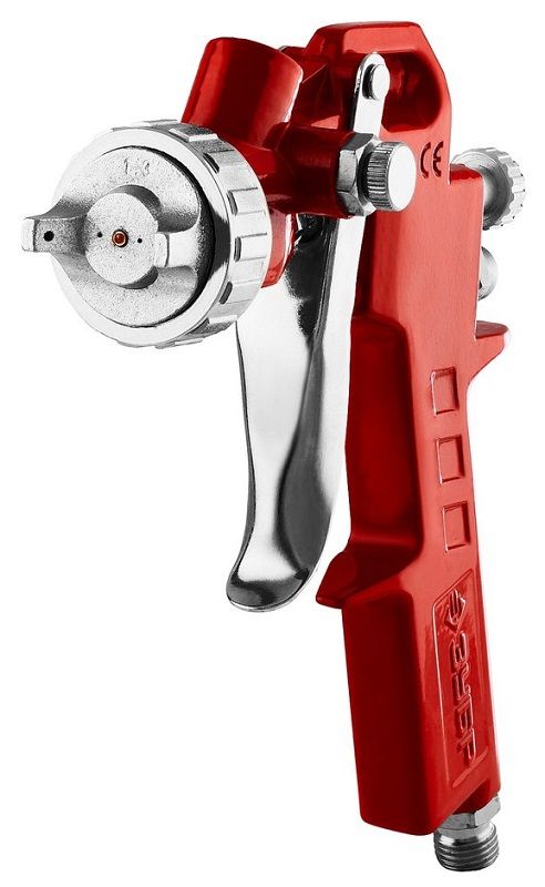 Особенности: Система распыления High Pressure (HP): высокое входное давление и низкий расход воздуха позволяет использовать краскопульт с бытовыми компрессорами. Получается однородный факел идеальной формы. Регулировки формы факела и хода курка делает.