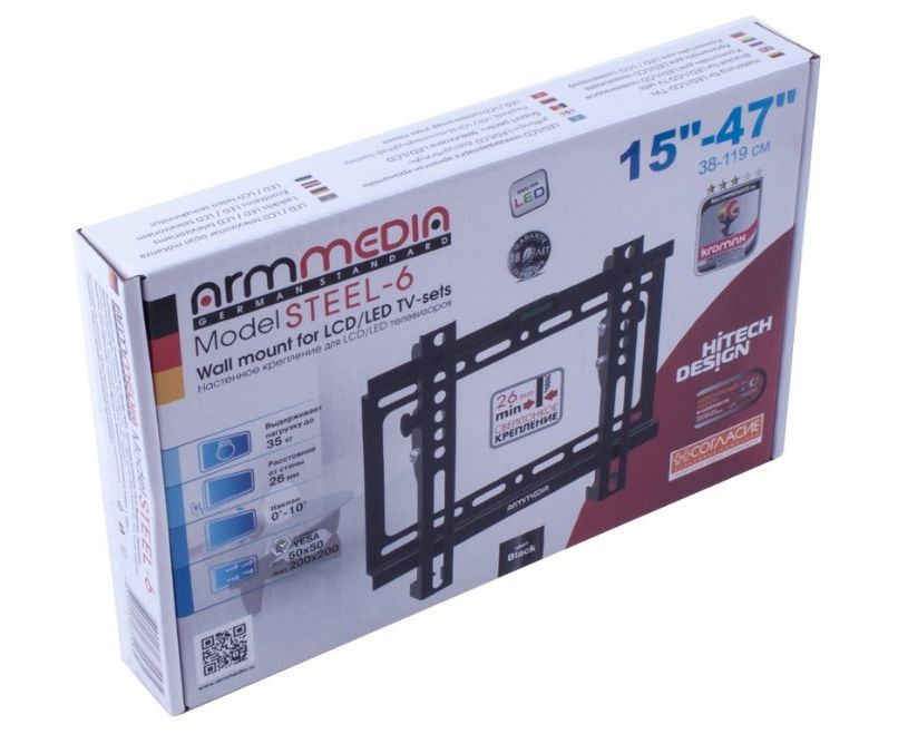 15"-47" Кронштейн Arm Media STEEL-6 черный макс.40кг настенный наклон
