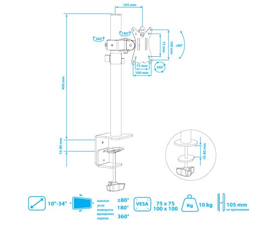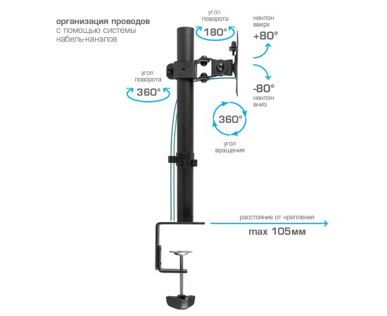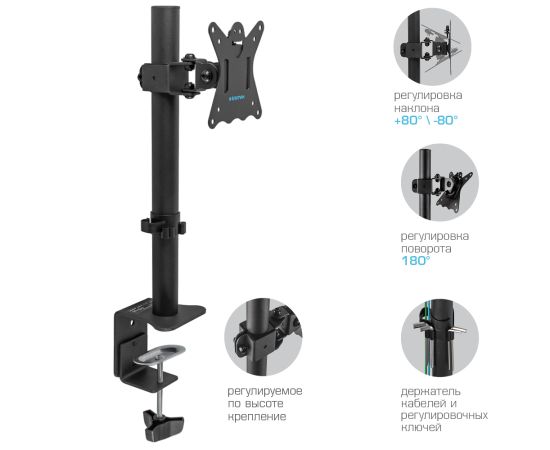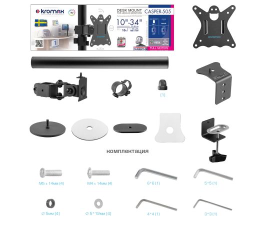 Кронштейн для мониторов Kromax CASPER-505 черный 10"-34" макс.10кг настольный поворот и наклон