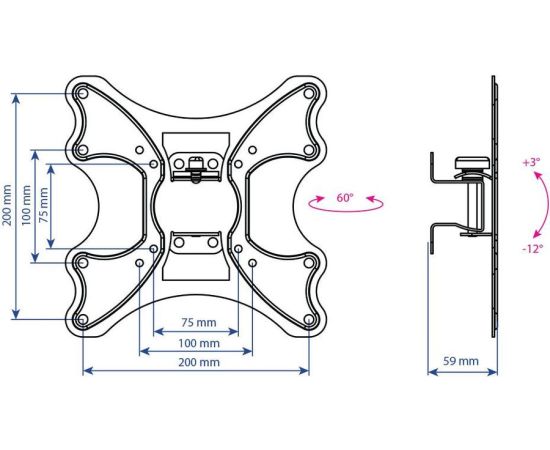 Описание Легкий монтаж при помощи съемной монтажной пластины. Надежная стальная конструкция. Универсальный телевизор на кронштейне можно наклонить, повернуть и сдвинуть к стене. Регулировка угла наклона без использования инструментов.