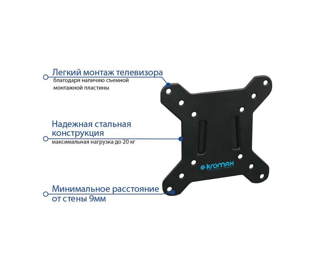 15"-32" Кронштейн Kromax VEGA-3 new Фиксированный Чёрный Нагрузка до 20кг Отступ от стены: 9мм