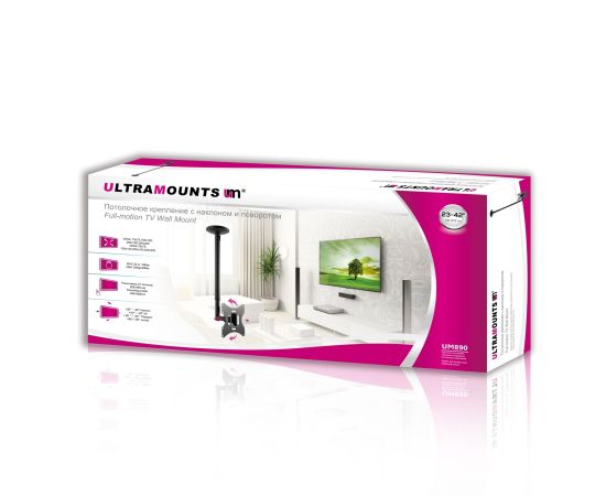 Кронштейн Ultramounts UM890 черный 23"-42" макс.30кг потолочный поворот и наклон