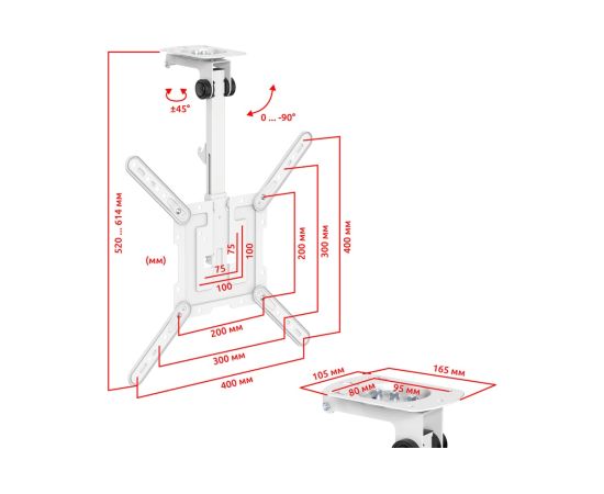 Полуавтоматический, складной, потолочный, подполочный кронштейн для телевизора или монитора с возможностью навески под мансарду UNITEKI LCD3440CBW в белом эксклюзивном окрасе. Он обладает широчайшими возможностями наклона и поворота, складывания к потолку, полке или мансарде и передвижением в вертикальной плоскости. Вы можете занимать любое удобное положение при просмотре ТВ или работе за монитором за счет широких возможностей регулировки угла наклона и изменения высоты.