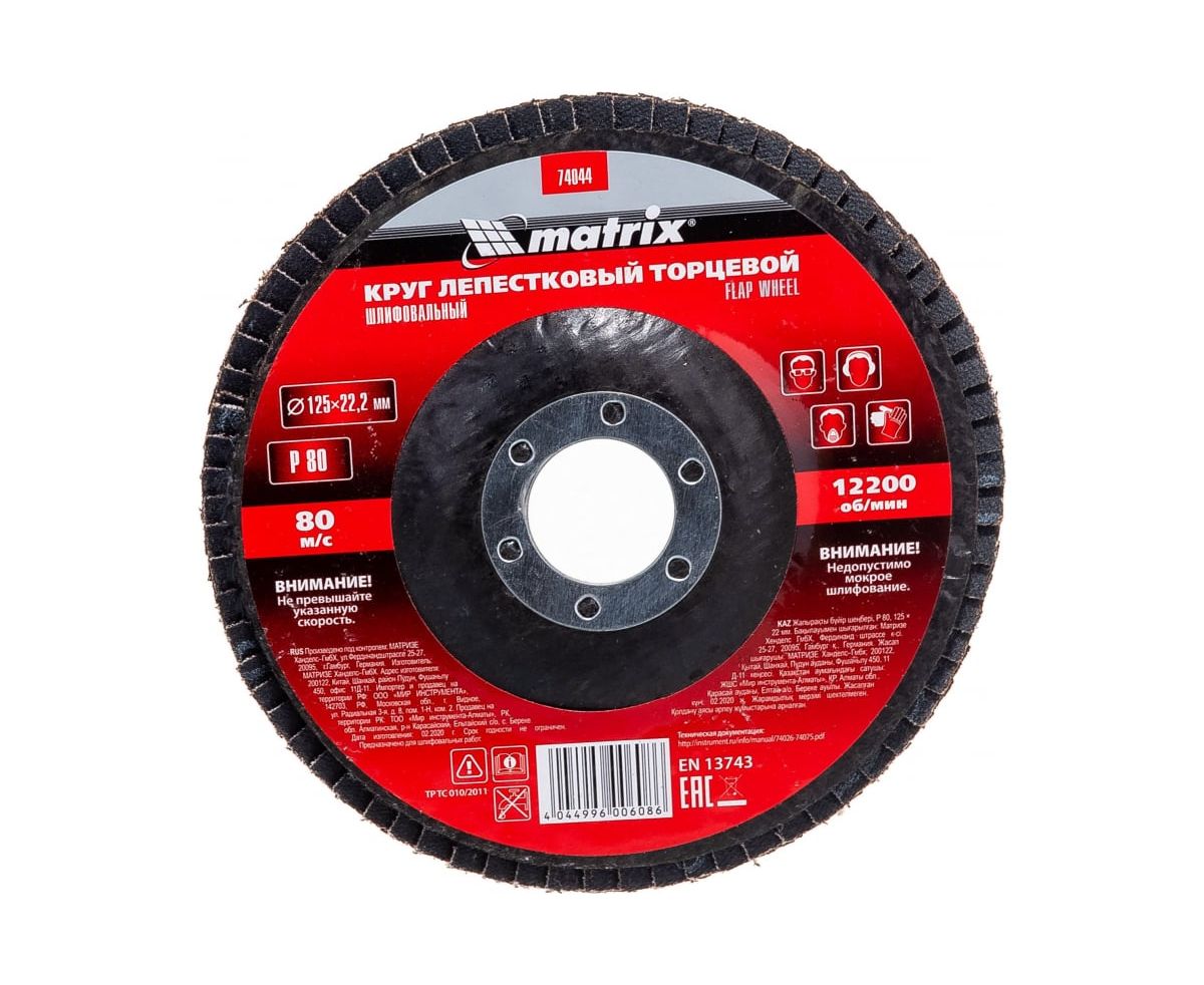 Технические характеристики торцевого лепесткового круга MATRIX 74044