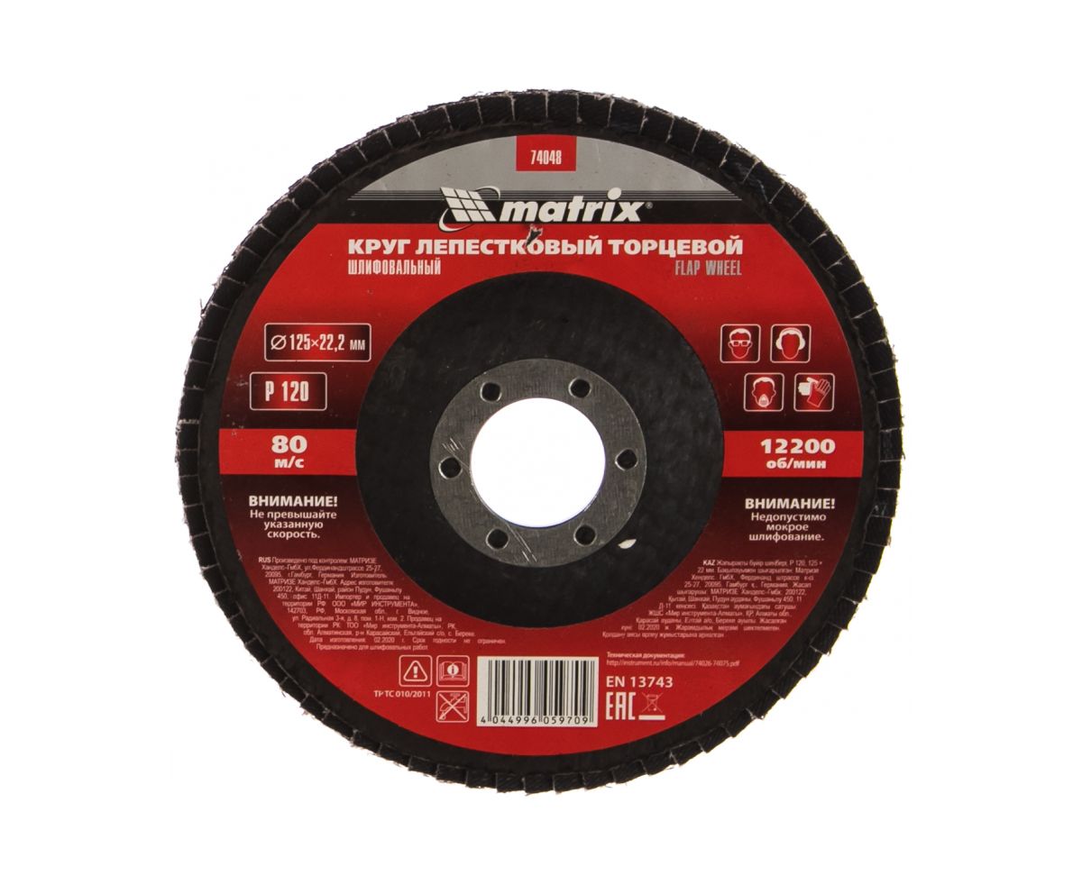 Технические характеристики торцевого лепесткового круга MATRIX 74048