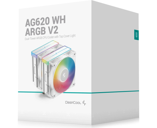Кулер DEEPCOOL AG620 WH ARGB V2 LGA20XX/1700/1200/115X/AM5/AM4 (TDP 260W, PWM, ARGB Dual Fan 120mm, 6 тепл. трубок, белый) Ret