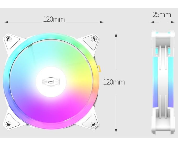 Кулер PcCooler F3 T120 ARGB WH (120x120x25mm, 4-pin PWM, 46CFM, 21.6dBA, 1800RPM, White)