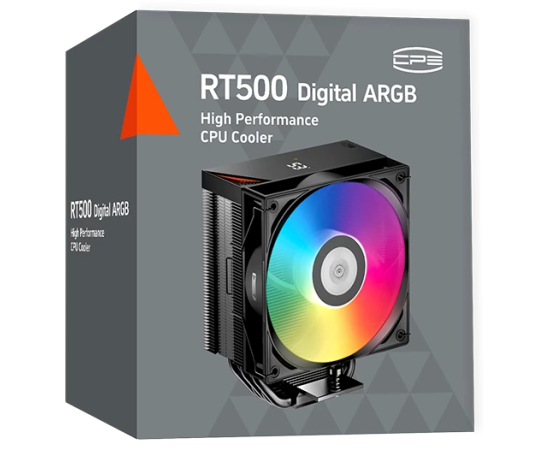 Кулер PcCooler RT500 Digital ARGB BK (240W, 4-pin PWM, LED temp., 152mm, Al/Cu, 5x6mm, 1x120mm, 73.32CFM, 34.9dBA, 2200RPM)