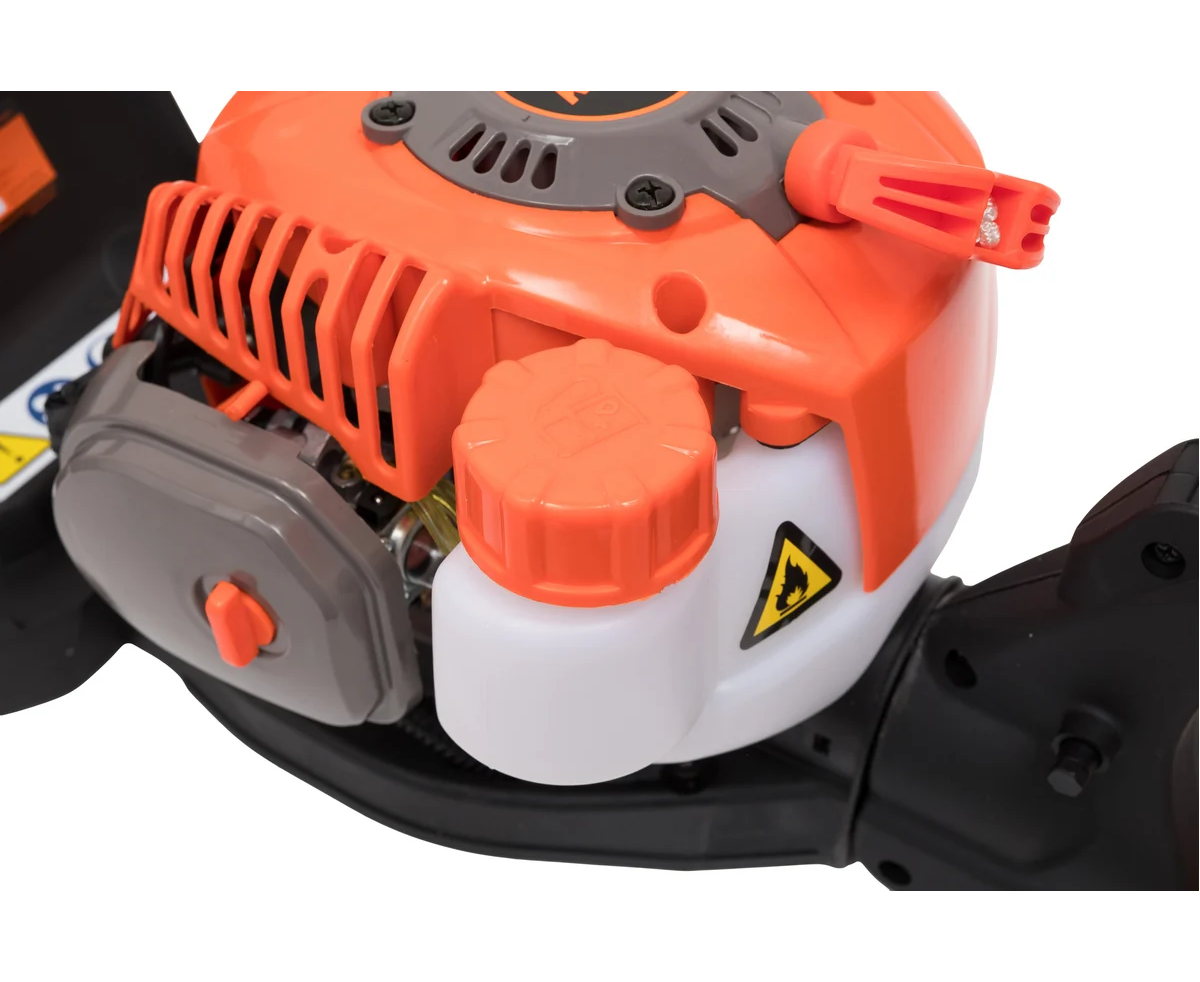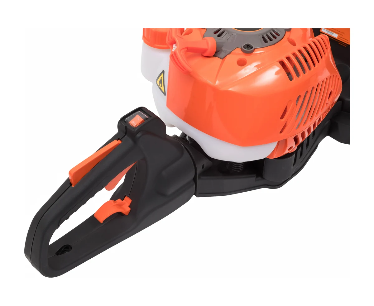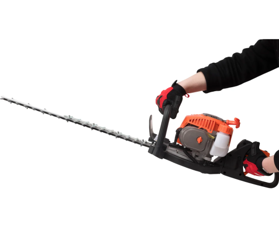 Поворотная рукоятка способствует удобству управления, обеспечивая комфортную работу в различных положениях. Частота хода лезвия достигает 1800 об/мин, что гарантирует быструю и качественную резку. Емкость топливного бака составляет 0,5 литра, что обеспечивает продолжительную работу без частых дозаправок. Компактные размеры и вес 5,7 кг делают кусторез удобным в транспортировке и хранении.