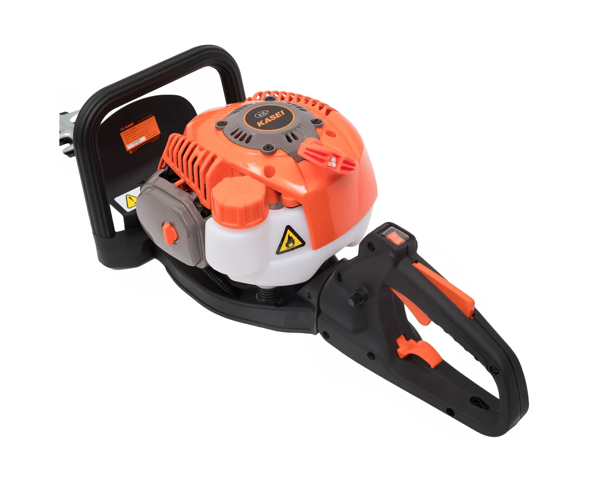 Бензиновый кусторез Ex Kasei SLP600S представляет собой бытовой инструмент, идеально подходящий для ухода за кустарниками и живыми изгородями. Оснащенный мощным двигателем в 0,9 л.с. и объемом 22,5 см³, он обеспечивает надежную и эффективную работу. Двусторонний нож длиной 60 см позволяет легко справляться с ветвями толщиной до 2,5 мм.