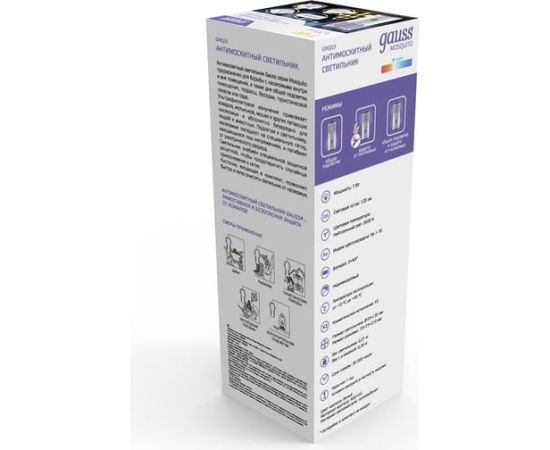 Антимоскитный светильник GAUSS Mosquito, 7 Вт, 3 AA, 1/40 GMQ03 – световое устройство, которое защищает от летающих насекомых как внутри помещения, так и снаружи, например, в беседке, террасе или туристической палатке.