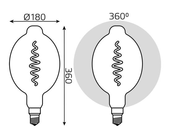 Технические характеристики Gauss LED Filament BT180 E27 8.5W Gray 165lm 1800K 1/2 152802005